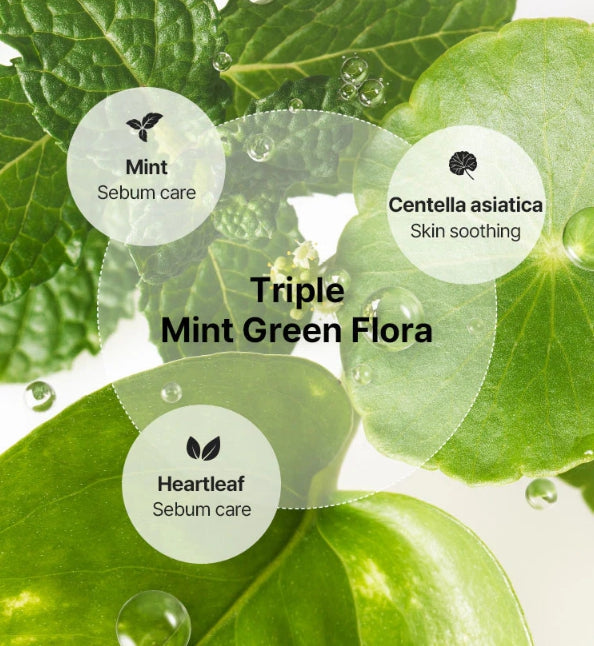 - Triple Mint Green Flora: Mint, heartleaf and Centella asiatica extracts work together to calm irritation, reduce redness and provide a cooling sensation during cleansing.
