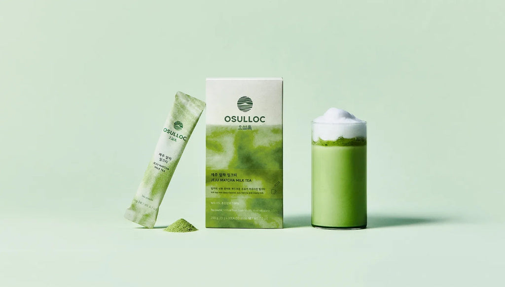 Indulge in the rich harmony of OSULLOC Jeju Matcha Milk Tea—blending premium Jeju-grown matcha with creamy milk for a smooth, mildly sweet tea experience in a convenient stick format.