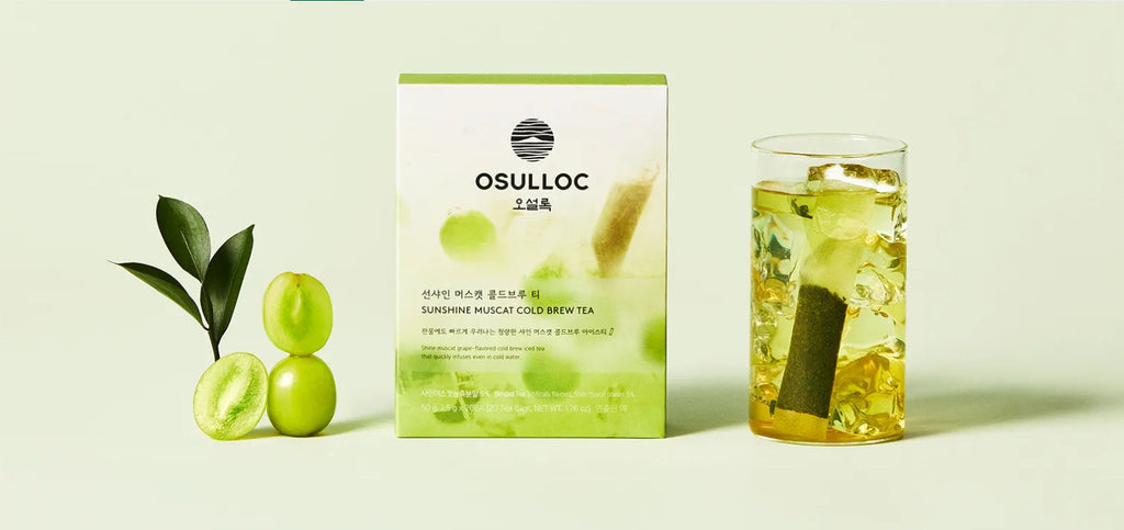 Refresh your day with OSULLOC Sunshine Muscat Cold Brew Tea—a crisp blend of green and black tea infused with the fragrant sweetness of shine muscat grapes, crafted for effortless cold brewing.